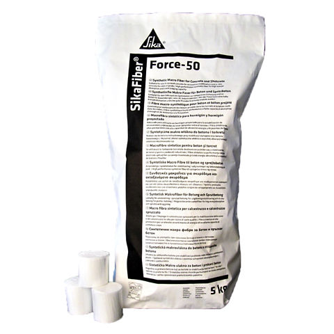SikaFiber® Force-50 sunt macro fibre sintetice cu lungimea de 50 mm, proiectate a fi utilizate într-o gamă diversificată de betoane structurale. Pot fi utilizate în betonul de transport, betonul prefabricat și betonul torcretat atât suprateran cât și subteran. Modul de realizarea al fibrelor, embosarea acestora, îmbunătățește aderența cu betonul, sporind proprietățile finale ale betonului. Macro fibrele sintetice au fost proiectate pentru a înlocui armarea tradițională cu oțel oferind o serie de beneficii precum: îmbunătățirea performanțelor, reducerea costurilor și scăderea riscurilor privind siguranța și protecția muncii.