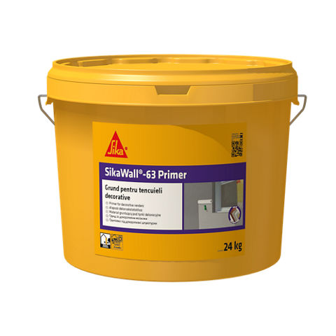 SikaWall-63 Primer este o rasina acrilica in dispersie apoasa avand in compozitie agregate minerale fine, destinata amorsarii suprafetelor inainte de aplicarea tencuielilor decorative. Produsul se livreaza colorat conform paletarului Sika Color 1.0 sau ca baza de colorare.