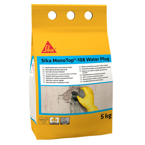Sika MonoTop®-108 WaterPlug este un mortar de ciment cu priză rapidă pentru stoparea infiltrațiilor de apă atât prin elemente din beton, cât și prin elemente de zidarie.